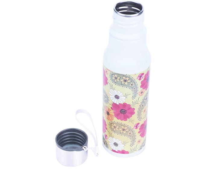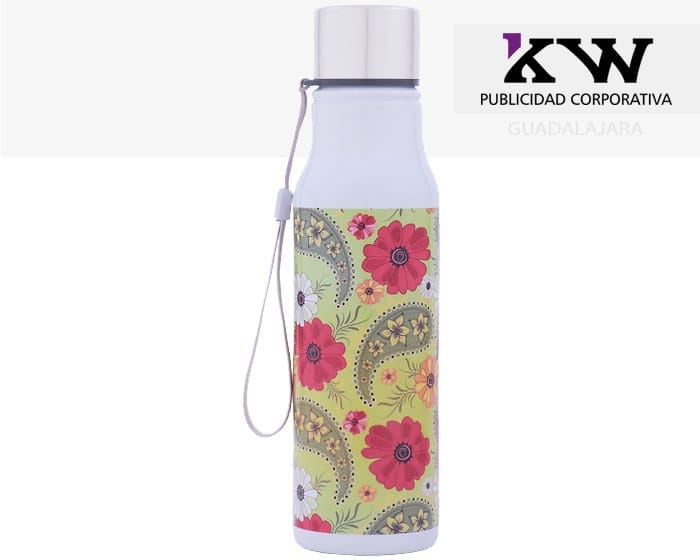 Cilindro para sublimación de acero inoxidable, con tapa de rosca hermética en color plata y cordón para sostener. Capacidad setecientos cincuenta mililitros Presentación: caja en color blanco.
