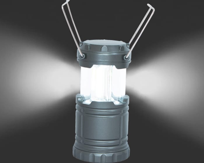 Lámpara led de campin con sistema automatizado de encendido y doble asa abatible. Usa tres Baterías AAA (incluidas) Presentación: caja en color blanco.